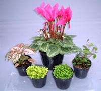 シクラメンや桜草などの草花や ヒポエステス・セラギネラ・ ポトス・ミュウレンベキア等の 一部の観葉植物。 |