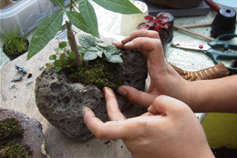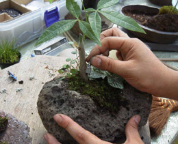 (押さえが多すぎると苔が傷みます、押さえが足りないと