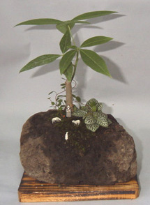 左:パキラ・ミュレンベキア・フィットニアの植物に小杉苔と鬼苔