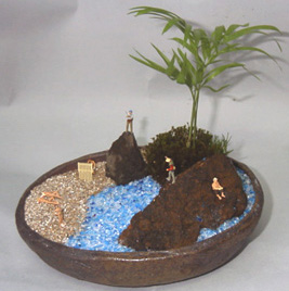 右:テーブリやし・軽石・色ガラス・フィギア7体