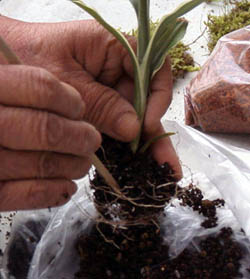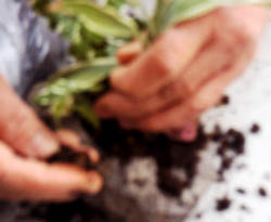 植物を植木鉢から抜き取ります。 |