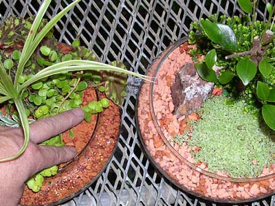 5・全ての植物の用土を軽く落としたら、