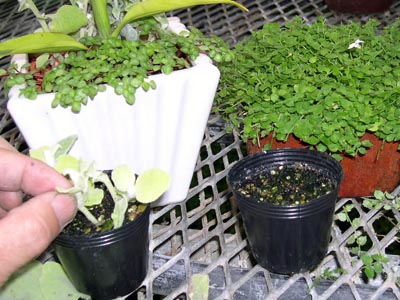 水かけのタイミング・・・左の植物がまだ与えなくてもいい乾きです。