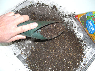 材料の「土のリサイクル活力材(東商1.8L入り)」は