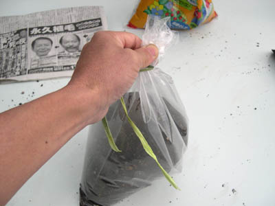 使っていた用土・ビニール袋(厚め)・紐・古新聞紙など紙