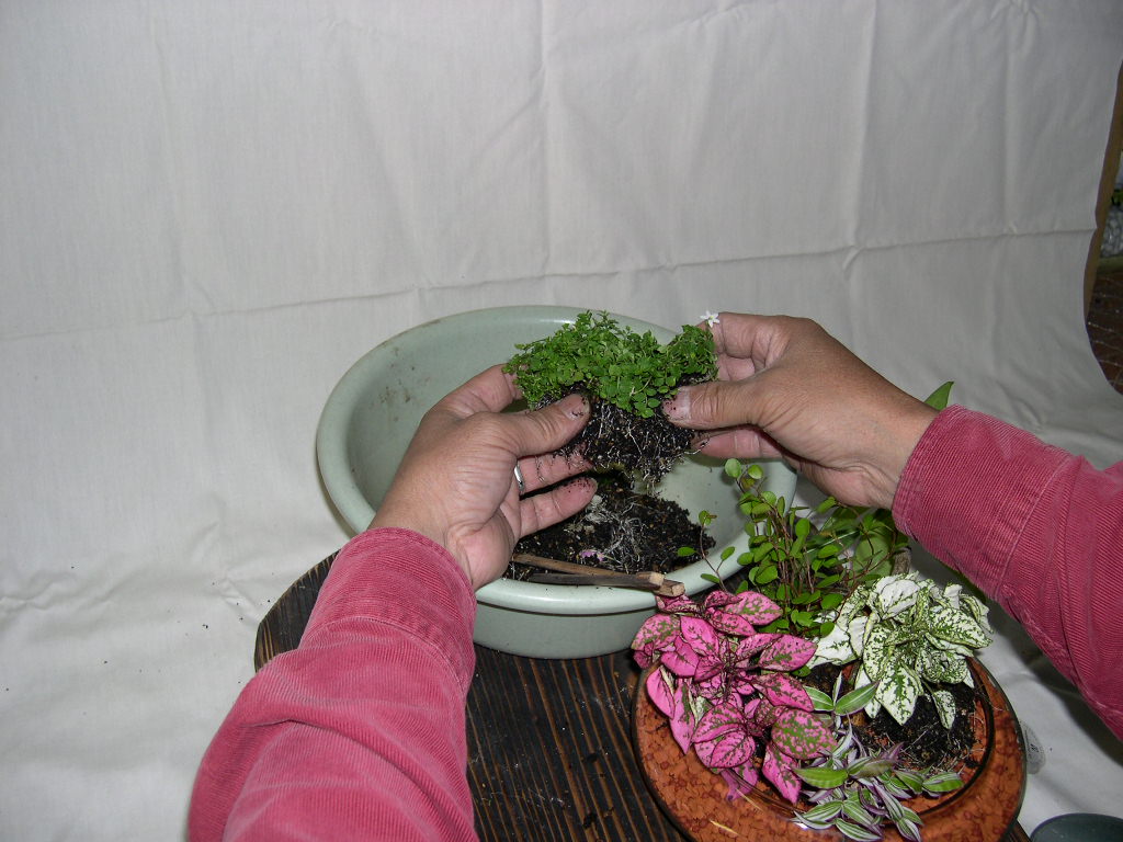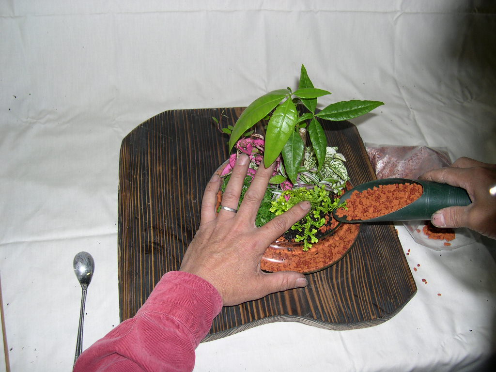 | 穴無し容器に専用土を使って作品を作りましょう。 | ||