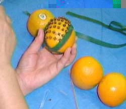 | 裏技 | ・クローブを刺す間隔や角度で見た目が違いますので、がんばって根気強く刺しましょう。 ・作った後の乾燥までに温度が高いときや、雨が続いたりする時は、作るのやめた方がいいと思います。 |