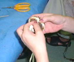 フローラテープで、1回り縦に伸ばしながら張りつける。 |