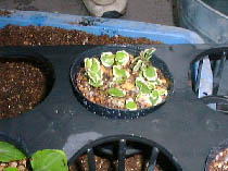 鉢の底から根が見え始めるまでは肥料は絶対に与えないで下さい。 発根したら液体肥料原液を2000倍の水に薄めて与え徐々に生育にあわせて濃くしましょう。 |