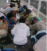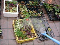 挿し木した後は水をていねいに優しく与えます。 |