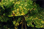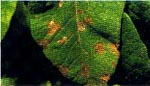 ほとんどの植物が被害をうけます。葉に褐色の小さな斑点状の病斑ができ、次第に大きくなり生育不良や落葉したりします。生育期間中には薬剤を定期的に散布して予防してください。 |