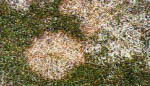 芝生の病気で、初めはリング状の症状が現われ外側が褐色に枯れていきます。梅雨時が最も多発しますので、薬剤散布して予防して下さい。 |