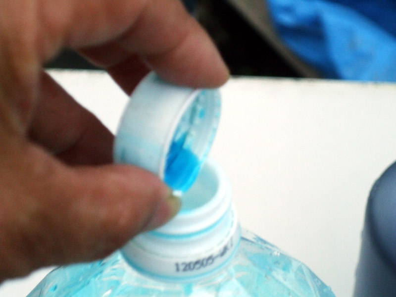 ぺットボトルを良く振って混ぜジョロに移します。 |