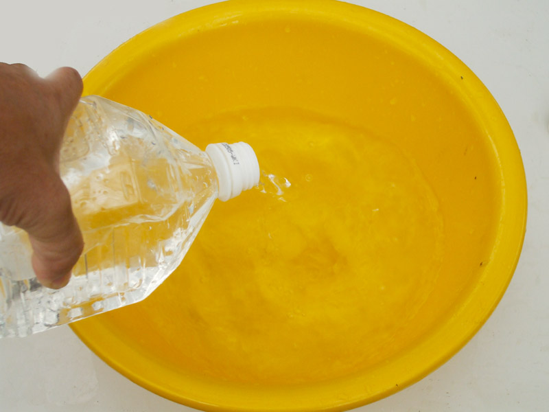 | タライ半分位に水を溜める。 |